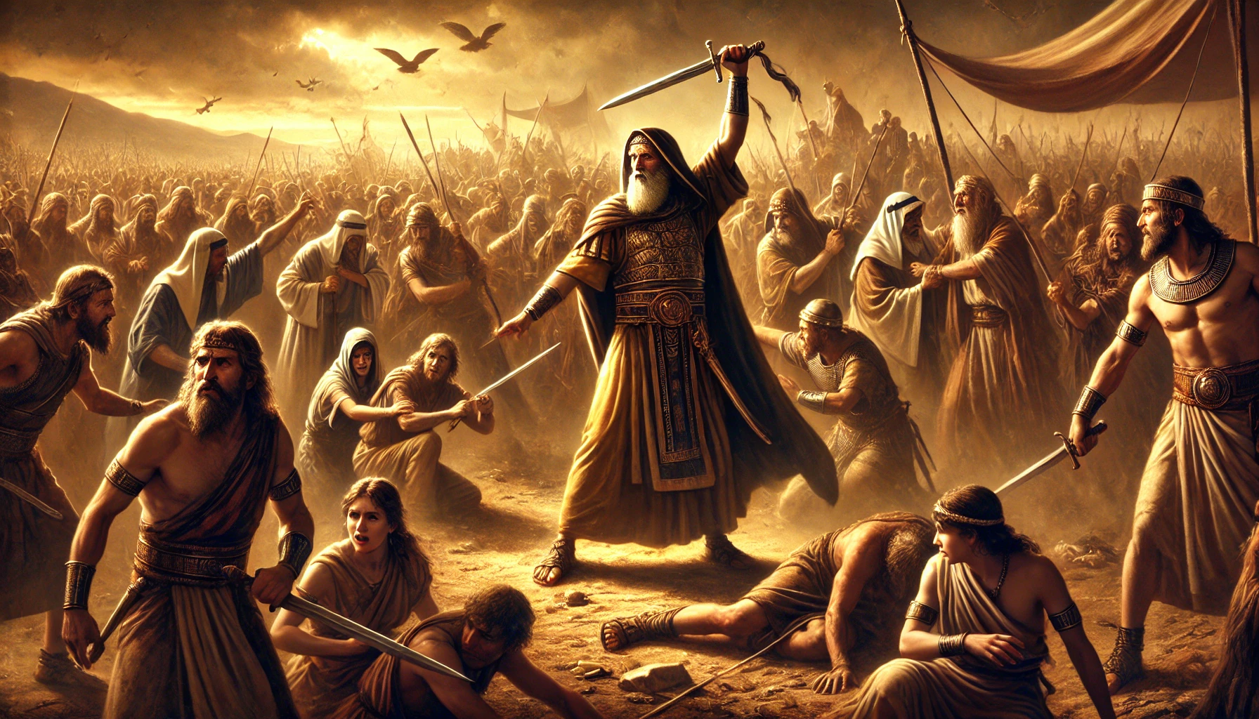모세는 죄를 방치하지 않았습니다. 그는 백성들 가운데 방자하게 행동하는 자들이 있음을 보고, "누구든지 여호와의 편에 있는 자는 내게로 나아오라"고 외쳤습니다. 이에 레위 자손들이 응답했고, 그들은 하나님의 명령을 수행하여 3,000명의 우상 숭배자들을 처단했습니다.