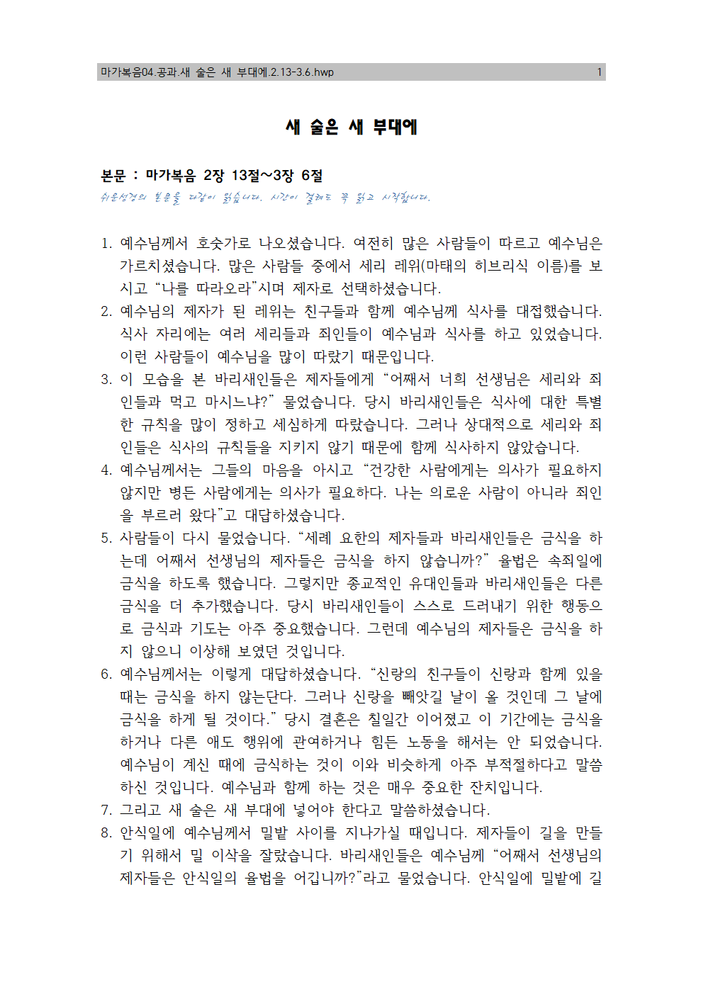 | 마가04. 나는 새 부대인가? (0) | 2019.08.04 |