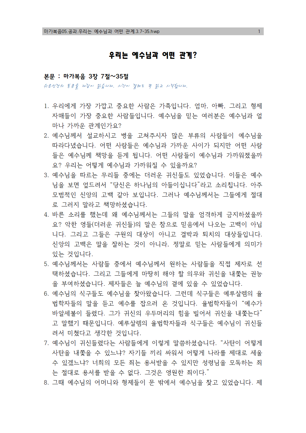 | 마가05. 예수님과 우리는 몇 촌? (0) | 2019.08.11 |