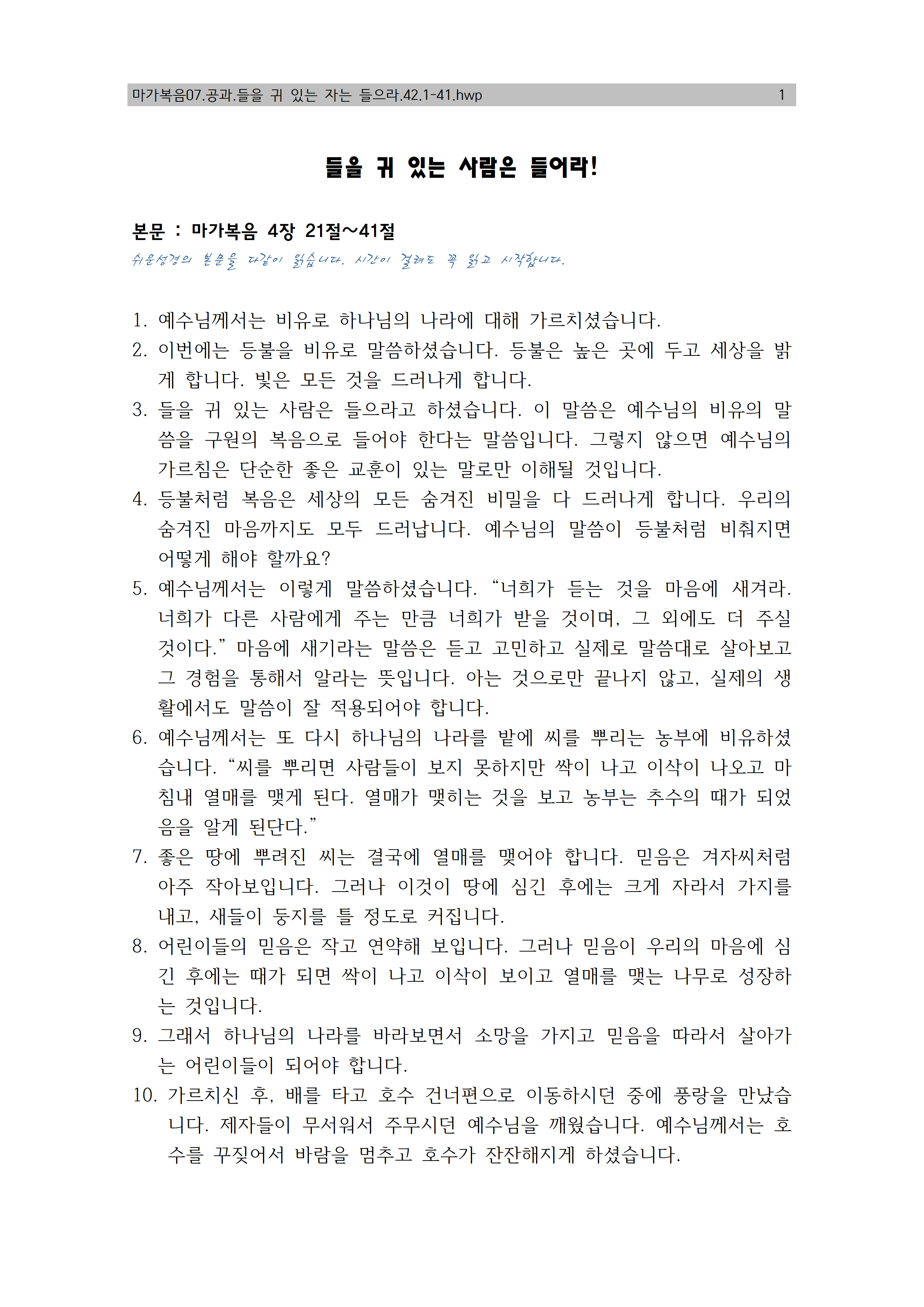 | 마가06.공과.복음의 열매를 맺는 마음 밭 (0) | 2019.08.15 |