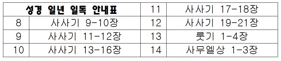 * 성경통독 잊지 마세요. 이번주 성경통독 일정입니다.