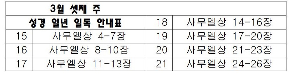 * 성경통독 잊지 마세요. 이번주 성경통독 일정입니다.