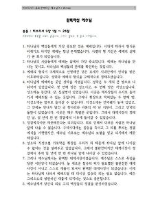 교회학교66 마가11.공과.외식; 위선자들의 행동 2019. 9. 30. 마가07. 공과. 들을 귀 있는 사람은 들어라! 2019. 8. 24. 마가05.공과.우리는 예수님과 어떤 관계? 2019. 8. 10. 마가04.공과. 새 술은 새 부대에 2019. 8. 3. 이삭02.비웃음을 함박 웃음으로 바꾸신 하나님 2019. 5. 25. 히브리서11.공과.완벽하신 예수님 2019. 3. 3. 히브리서10.공과.새 언약의 대제사장 2019. 2. 24. 히브리서09.공과.완벽한 제사장, 예수 그리스도 2019. 2. 16. 히브리서08.공과.안전한 하나님의 약속 2019. 2. 8. 히브리서06.공과.열심히 예수님을 배워야 합니다. 2019. 1. 26. 히브리서05.공과.구원에 참여하는 어린이 2019. 1. 23. 히브리서04.공과.하나님의 가족으로 살아갑시다 2019. 1. 23. 이전 1 2 3 4 ··· 6 다음