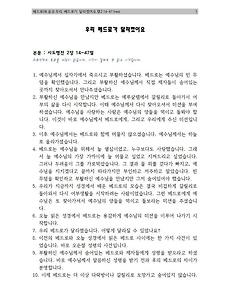 베드로28 베드로#01 / 우리의 살아있는 소망 / 베드로전서 1:1-12 여호와께서는 선택하시고, 그리스도의 희생으로 깨끗하게 하신 성도를 보호하십니다. 여호와의 보호 아래 우리는 살아있는 소망으로 살아갑니다. 2022. 1. 9. 베드로13. 우리도 베드로처럼 (갈아디아서 2장 8-16절) 베드로 13번째 우리도 베드로처럼 (갈라디아서 2장 8-16절) 그리스도인이 거룩하고 성공한다는 것은 완성된 모습이 아니고, 진행하는 것입니다. 베드로도 실수하고 넘어지지만 그는 결국 교회의 기둥으로 성공한 인생으로 거룩한 그리스도인으로 성공했습니다. 거룩함은 인생에서 넘어지고 실패하지만 만나는 상황마다 하나님의 뜻과 의도에 예민함으로 일어나고 성공하는 것입니다. 그리고 그 예민함에 반응하는 것입니다. 2017. 10. 8. 베드로12. 하나님 나라 선발대장 베드로 베드로 12번째. 하나님 나라 선발대장, 베드로 (사도행전15장 1-11절) 예수를 믿어 구원에 이릅니다. 그 어떤 습관이나 형식도 예수의 구원에 훼방거리가 되지 말아야 합니다. 초대교회 당시에는 유대인들이 율법으로 구원의 길을 가로막았습니다. 예수를 믿어도 할례를 받고 율법을 지켜야 구원받는다는 것입니다. 그러나 이것을 베드로가 강하게 반대합니다. 우리의 조상과 우리도 지키지 못하는 짐을 새로믿기 시작하는 초신자들에게 요구하는 것은 옳지 못하다는 것입니다. 우리는 혹시 유대인들처럼 구원의 길을 내 습성과 습관때문에 가로막지는 않습니까? 2017. 10. 1. 베드로12.공과.하나님 나라의 선발대장, 베드로 2017. 10. 1. 베드로11. 나보다 그리스도. 행11:1-18 베드로11번째. 나보다 그리스도 (사도행전 11장 1-18절) 세상의 모든 옳고 그름의 기준은 하나님이 정하십니다. 우리는 하나님께서 정하신 기준을 따라서 우리를 변화시키는 것입니다. 그것이 경건이고, 성화입니다. 가끔 우리의 습관과 양식을 지키느라 하나님의 법을 거절하고 있지 않은지 살펴봐야 합니다. 경건이란 끊임없이 우리가 하나님 나라를 바라보면서 변화하기를 쉬지 않는 것입니다. 2017. 9. 24. 베드로11.공과.나보다 예수님 우선 2017. 9. 23. 베드로10. 최악에서 최선을 경험하다. 행5:12-42 베드로 열번째 설교 최악에서 최선을 경험하다 (사도행전 5장 12-42절) (이번주는 영상녹화에 문제가 생겨서 음성만 확보되는대로 게시하겠습니다.) 이전의 모습과 다른 베드로와 제자들은 확실히 변했습니다. 변한 베드로는 더이상 감옥과 매맞는 것을 두려워하지 않습니다. 오히려 하나님의 말씀을 위해서 고난을 당하는 것을 감사하고 영광스러워합니다. 이것이 바로 참 예수의 제자의 삶입니다. 우리도 이와 같았으면 좋겠습니다. 2017. 9. 17. 베드로10.공과.예수님의 모든 것을 닮은 어린이 2017. 9. 16. 베드로09. 진정 올바른 성도의 삶 베드로 아홉번째. 진정 올바른 성도의 삶 (사도행전 4장 1-22절) 참된 그리스도인의 삶을 산다는 것은 그리스도처럼 그리스도인척 살아가는 것입니다. 제자들은 이전에는 도망치고 숨어야 했지만, 성령의 충만 후에는 예수인듯 예수처럼 담대하게 행동합니다. "내가 하나님 앞에서 당신들의 이야기를 듣는 것이 옳은가 하나님의 말씀을 듣는 것이 옳은가? 나는 하나님의 말씀대로 살겠습니다." 우리가 할 수 있는 최고의 삶의 고백입니다. 2017. 9. 10. 베드로09.공과.예수님을 닮아가는 어린이 2017. 9. 10. 베드로08. 우리 베드로가 달라졌어요. 새성실교회 주일오전 말씀. 베드로 8번째 우리 베드로가 달라졌어요 (사도행전 2장 14-47절) 예수님의 제자 베드로가 이전과는 다른모습을 보여줍니다. 이전에는 열심은 있는데 결과가 늘 두려움과 염려 때문에 실수하고 실패했지만, 오늘 베드로는 매우 담대하고 용감합니다. 어떻게 달라졌을까요? 오순절 성령강림사건 이후 베드로가 달라졌습니다. 성령이 베드로와 동행하면서 달라졌습니다. 성령은 하나님께서 부어주시는 것입니다. 우리의 입장에서는 할 수 있는 일이 없지요. 그럼에도 우리들의 입자에서 중요한 것이 하나 있습니다. 매우 중요합니다. 예루살렘을 떠나지 않고 기다리는 것입니다. 베드로는 염려와 두려움으로 늘 예수님을 떠났습니다. 그러나 이제 부활하신 예수님의 명령으로 예루살렘에서 성령을 기다림으로 정말 사도.. 2017. 9. 3. 베드로08. 공과. 우리 베드로가 달라졌어요 2017. 9. 3. 이전 1 2 3 다음